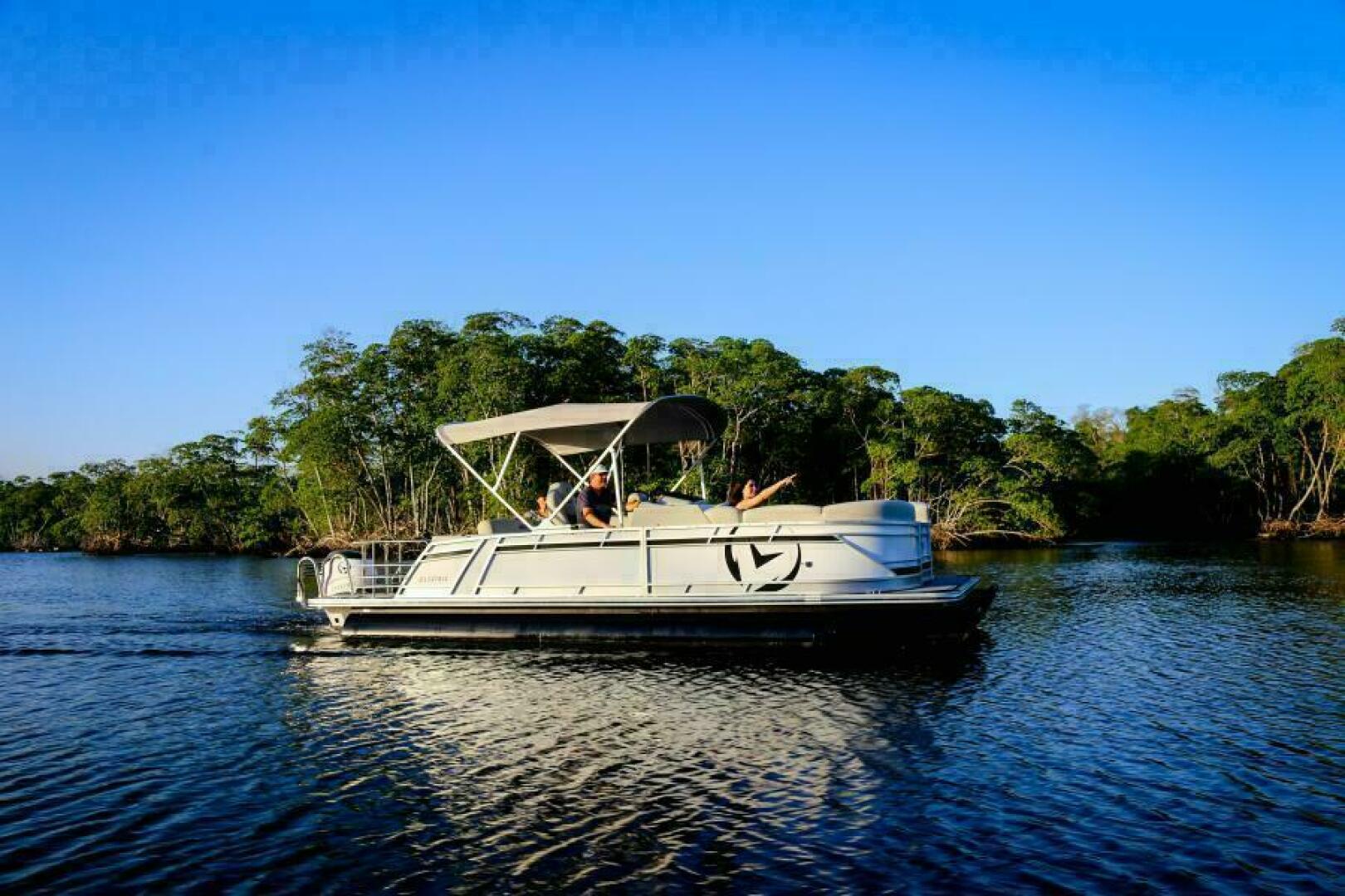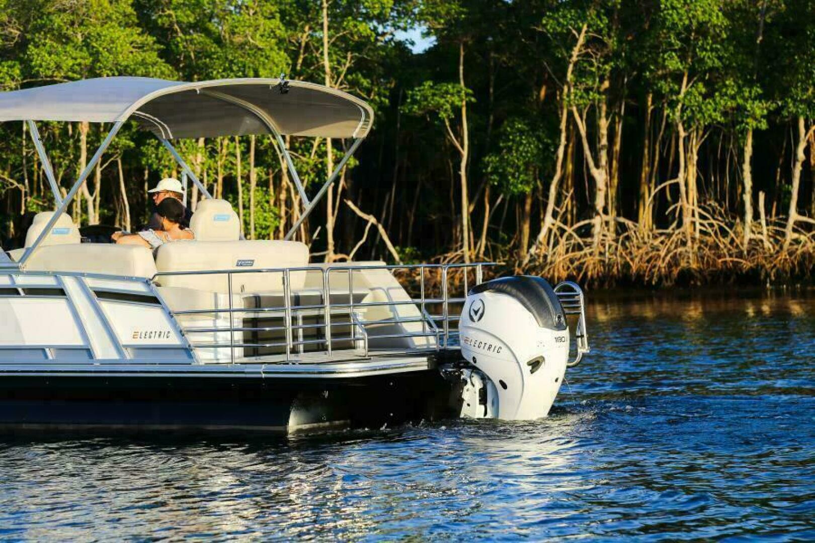 The V24 Electric Pontoon is a 100% electric luxury boat built for smooth, powerful, and sustainable cruising. Powered by the E-Motion™ 180E electric outboard delivering 180 HP, it offers instant torque, almost noiseless operation, and zero emissions. With a spacious layout for up to 12 passengers, it includes plush seating, a ski tow bar, Bluetooth battery monitoring, and a sleek smart display. Enjoy a cruising range of 40 to 90 nautical miles* with single or dual battery options. Charging is easy—just plug in at any standard dock or trailer outlet using 120V or 240V (30–50 AMP) shore power. Ideal for spending quality time with family and friends or exploring your favorite waterways, the V24 is built to elevate your on-water experience.